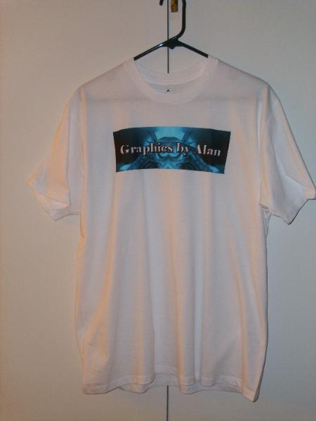 SEE SAMPLE BELOW. I do custom T-shirts with any graphic vision you choose for $20 each. Pre-made "Graphics By Alan"